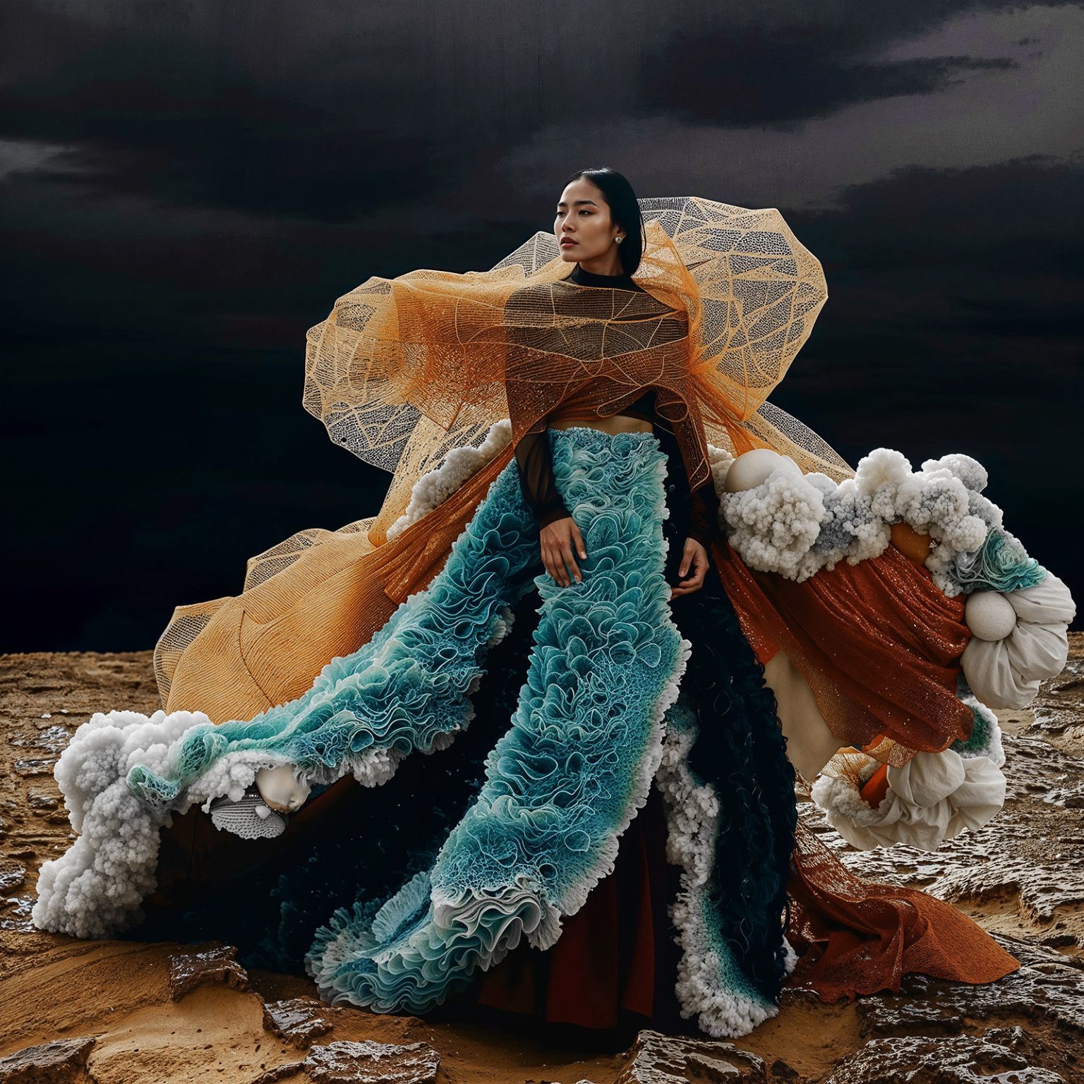 I have created a full collection and each dress mirrors the rich palette of Jupiter's atmosphere, where the blues, reds, oranges and creamy whites intermingle like the gaseous layers that envelop the planet. Check out here more https://www.linkedin.com/feed/update/urn:li:activity:7194780046094458881/