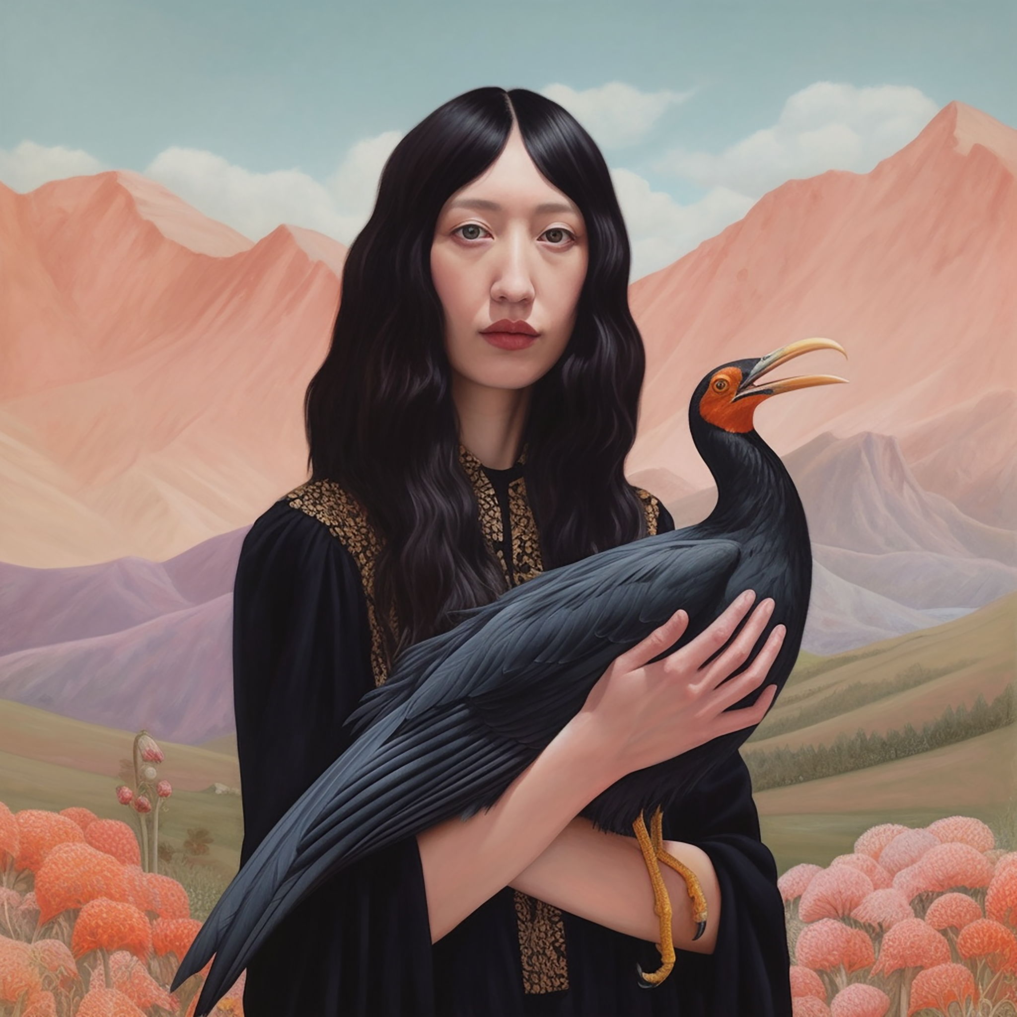 The inspiration for this artwork lies in the dialogue between the soul and the digital realm, where the boundaries between humanity and technology blur. The ibis, traditionally a symbol of the soul, here represents the human essence, which is observed and reflected by the algorithm—the neural network—acting as a mirror to our inner selves. The figure, holding the ibis close, symbolizes a deep connection between the individual and the machine that now looks back at us, not just as a tool, but as a silent observer of our emotions. This piece explores the idea of being watched by the AI, by the algorithm that gazes back into our eyes, scanning our emotional landscape and, in turn, shaping the digital reflection of our soul. The interaction between the subject and the ibis is both intimate and universal, representing the evolving relationship between the analog human experience and the increasingly pervasive digital consciousness. This artwork invites the viewer to contemplate whether we shape the algorithm or whether it begins to shape us, a dynamic mirrored in the emotional tension between the subject and the soul she holds.