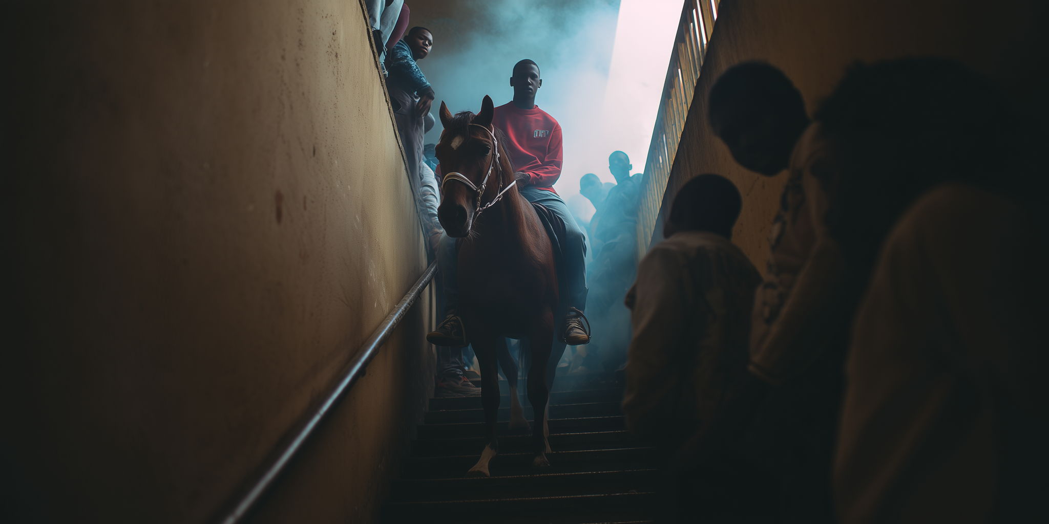 This photo, and the series it is part of, are primarily the result of historical and sociological research on the suburbs. I also drew inspiration from government reports on the riots, early 20th-century photographs from La Zone de Paris, anecdotes that I saw in the suburbs or news items noted in the press. This series is still ongoing and will span several months of work. It was created with a set of AI tools tailored to the needs of each image: Midjourney, Krea, Magnific, Firefly. I always work my images in a fairly raw way, trying to reduce the intervention of AI to photorealistic arrangement, I neutralize as much as possible any influence of style and any reference to other images. Each final photo requires the generation of several thousand images before achieving the desired result. I try to find a use of AI that is specific to it, that another medium could hardly produce, a realistic but impossible photograph, thus questioning the very nature of photography: is it the material used that makes the photo or the final rendering?