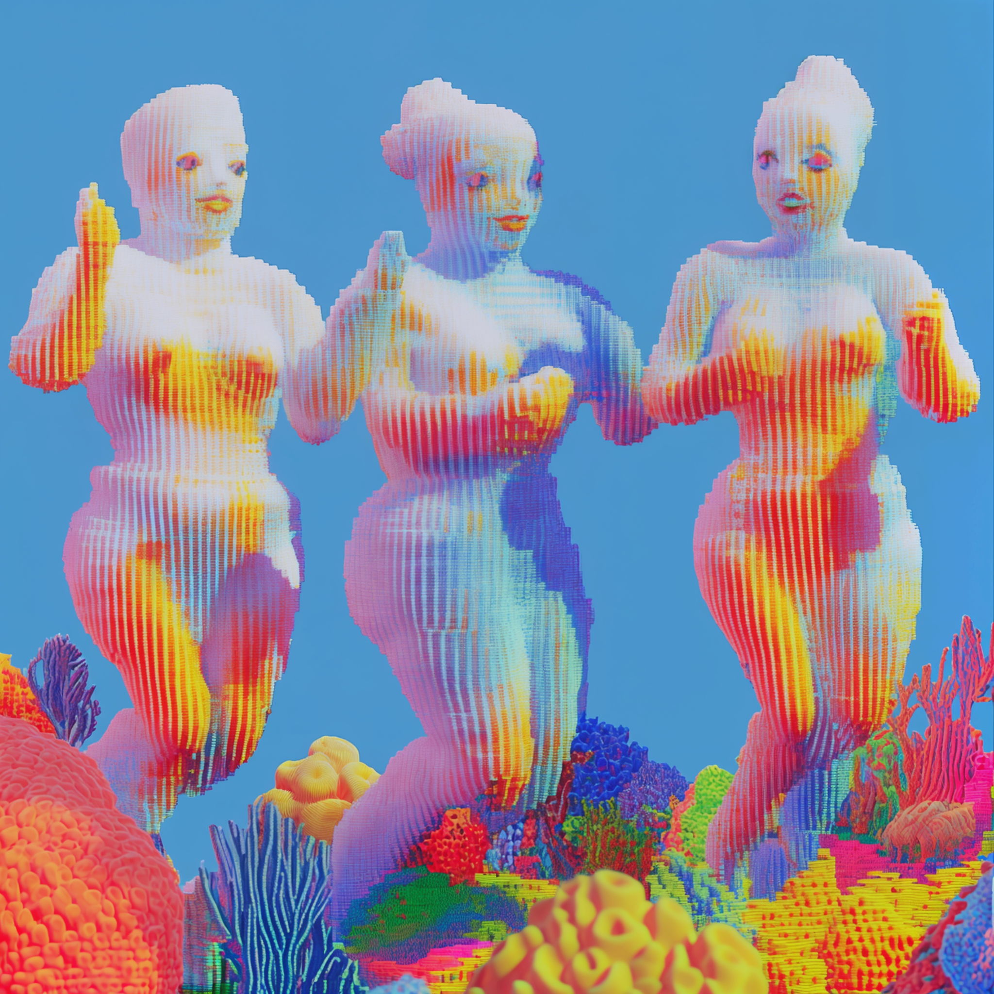 This work is part of a small series created for one of our AI community challenges. This particular challenge was organised by Women AI Artists, who host these events regularly. You might think of challenges as frivolous or not worth the time of an artist striving for a serious career in the arts, but I find them vital. They remind us of the essential role of play and exchange between artists. I've also noticed that with each challenge I participate in, I discover something new—both in my practice and within myself. This series, in particular, led me to a style that I want to keep working on, and one that is conceptually tied to my reflections on AI and digital art.
